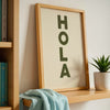 En enkel og moderne tekstplakat med ordet “Hola”.Gir rommet et vennlig og lekent uttrykk og passer perfekt i gang, stue eller kjøkken. Leveres uten ramme i størrelse 30 × 40 cm – en stilren detalj som ønsker velkommen med personlighet.