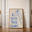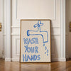 En rolig og stilren retroplakat med teksten “Wash Your Hands”.Perfekt for badet eller gjestetoalettet og gir rommet et humoristisk, men minimalistisk preg. Leveres uten ramme i størrelse 30 × 40 cm – en enkel detalj som både minner og underholder.